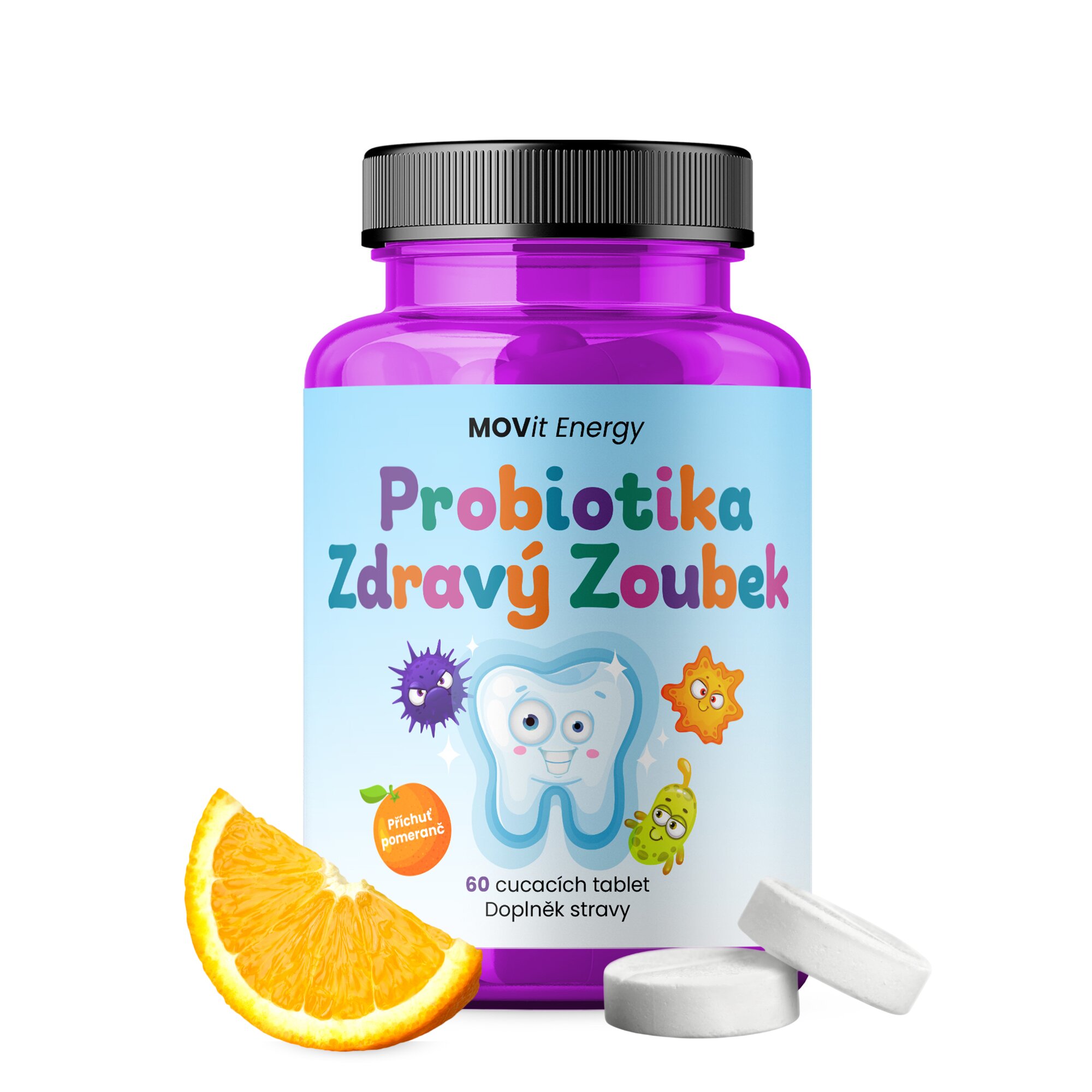 MOVit Probiotika pro děti ZDRAVÝ ZOUBEK60 cucavých tablet, příchuť pomerančDoplněk stravyÚSTNÍ MIKROBIOM & IMUNITADětské úsměvy si zaslouží tu nejlepší péči – chutná probiotika ZDRAVÝ ZOUBEK jsou ideální pro každodenní podporu dětského mikrobiomu v ústech i celkové obranyschopnosti. Jedna tableta...