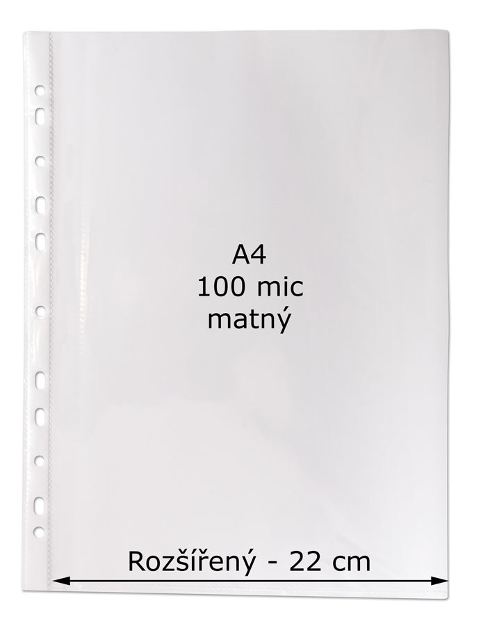 Rozšířený prospektový obal velikosti A4, šíře 22cm. Čirý, povrch matná krupice. Materiál polypropylen. Síla materiálu 100 mic. Baleno po 50 ks. prečítať celé