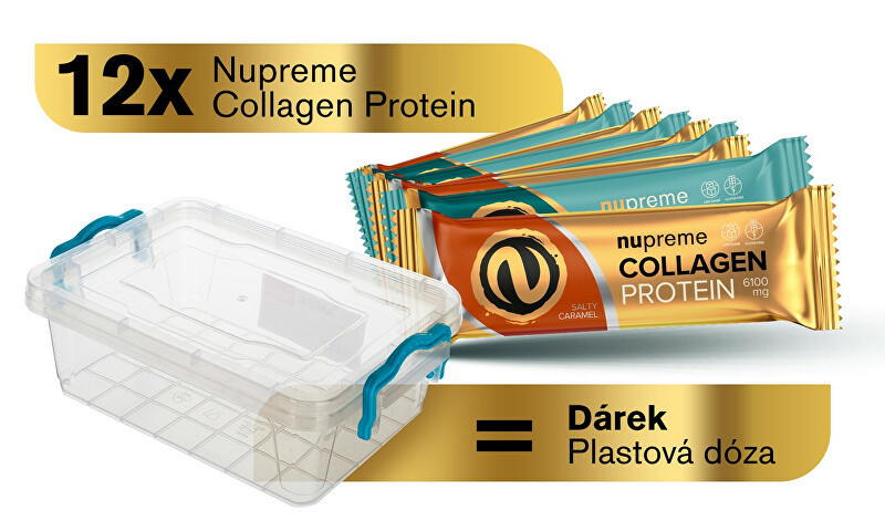 Proteinové tyčinky MIX v dóze:6 ks Proteinové tyčinky s kolagenem s příchutí kokosu a karamelu6 ks Proteinové tyčinky s kolagenem s příchutí slaného karameluPlastová dóza jako dárek. prečítať celé