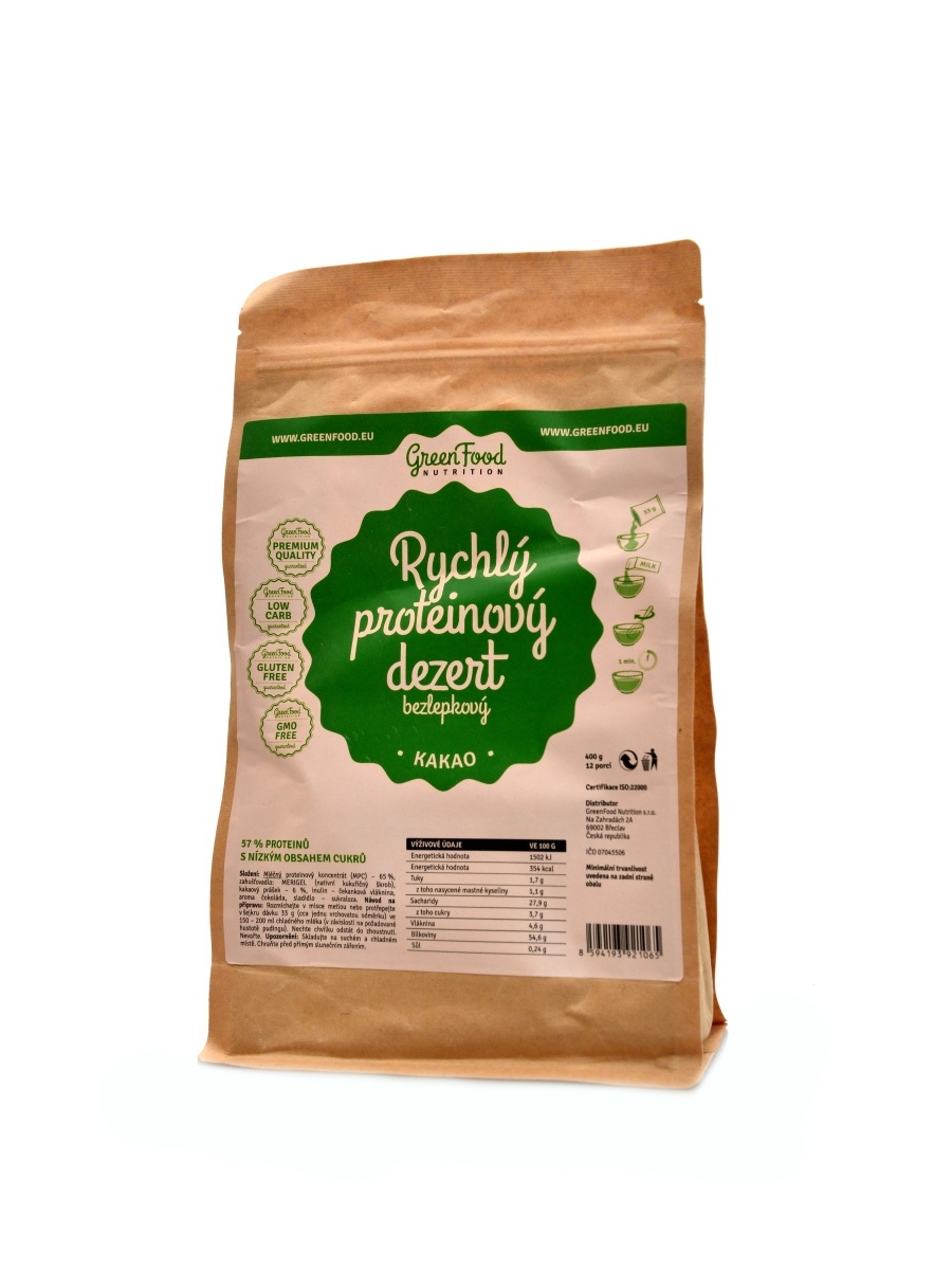 Rychlý proteinový puding bezlepkový je hotová instatní směs pro výrobu pudingu s vysokým obsahem proteinu (až 57 %), připravovaného za studena. GreenFood Nutrition Proteinový puding bezlepkový se právě rychlostí a snadností přípravy ideálně přizpůsobil našemu uspěchanému životnímu stylu a to ve...