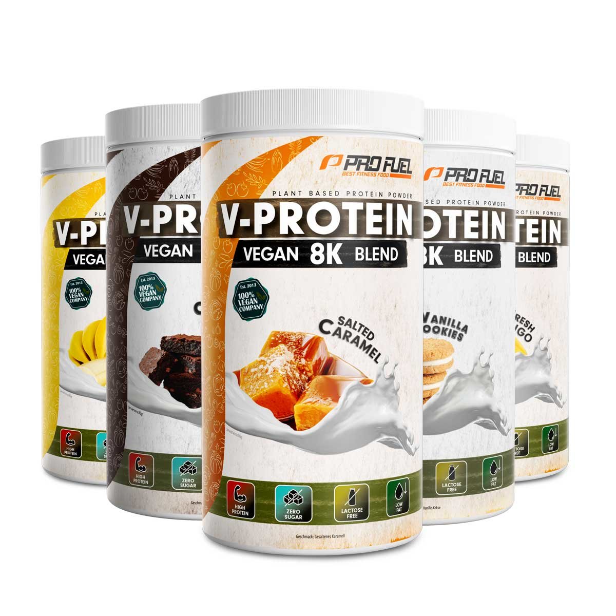Pro Fuel V-Protein vegan 8K Blend - rostlinný protein, který mění pravidlaVeganská proteinová směs ✓Vyrobeno z 8 vysoce kvalitních proteinů ✓Pocitově lahodný a krémový ✓Přirozená chuť ✓Vysoký obsah bílkovin (78 %) ✓Optimální biologická hodnota ✓Vyrobeno v Německu ✓100% veganské ✓Veganský...
