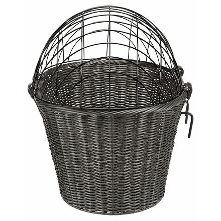 s drátěným krytem obsahuje řemínky k přichycení krytu ke koši součástí podpěra a dva držáky k připevnění na řidítka uvnitř polštář s plyšovým potahem (lze prát v ruce) materiál: polyratan, poplastovaný kov, polyester rozměry: 44 × 34 × 41 cm max. nosnost: 5 kg barva: černá prečítať celé
