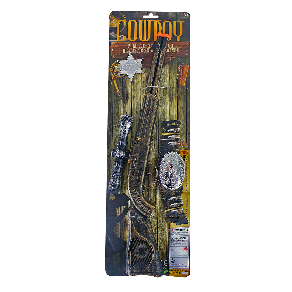 Lovecká puška nesmí chybět v žádném chlapeckém pokojíčku! Stisknutím spouště vydává puška opravdový zvuk a to bez použití baterií. Puška v imitaci kovu o délce 50 cm je vyrobena z PVC. Součástí je pásek a hvězda šerifa. prečítať celé