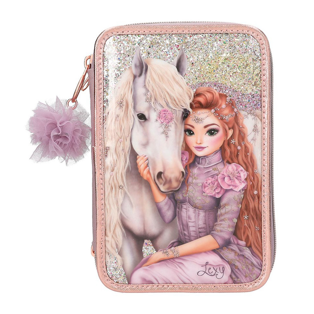 Penál 3 patra s výbavou Top Model, Růžový s flitry, Lexy s koněm