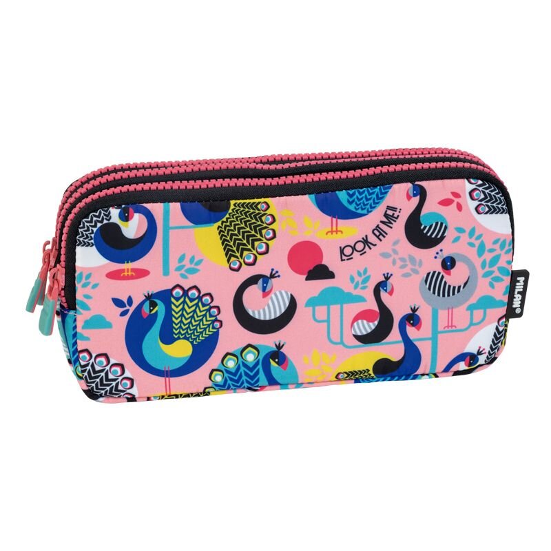 • penál, etue MILAN z kolekce PEACOCK • barevné provedení pávi na růžové podkladu, z druhé strany modrá paví pera • tři samostatně části se zapiem • složení látky polyesterová vnější látka i vnitřní podšívka • zapínání na zip • rozměry 22 x 11 x 6,5 cm • MILAN 081135PCKPEAN: 8411574089186