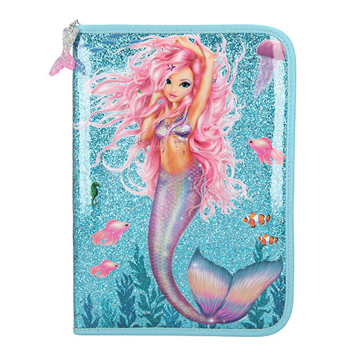 Penál s výbavou Fantasy Model Mořská panna, jednopatrový, tyrkysový s glitry