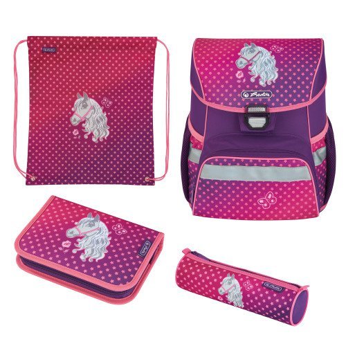 Výbava: penál 16 dílů, sáček na cvičky, kulaté pouzdro