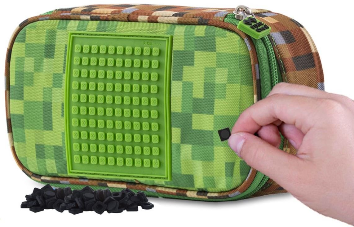 Prostorný penál s motivy našeho bestselleru zeleno-hnědé kostky připomínající světoznámou počítačovou hru Minecraft, vyrobený z polyesteru v kombinaci se silikonem ocení spíše starší školáci. Uvnitř pouzdra je kapsička uzavíratelná na zip a klopa se dvanácti klasickými gumovými úchyty na tužky a...