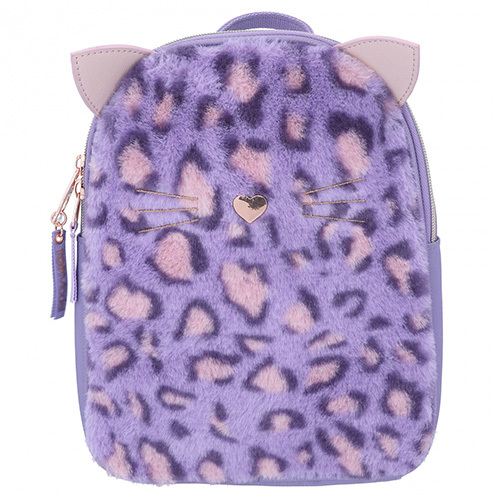 Batůžek Top Model, Fialový s leopardí srstí, ve tvaru kočky
