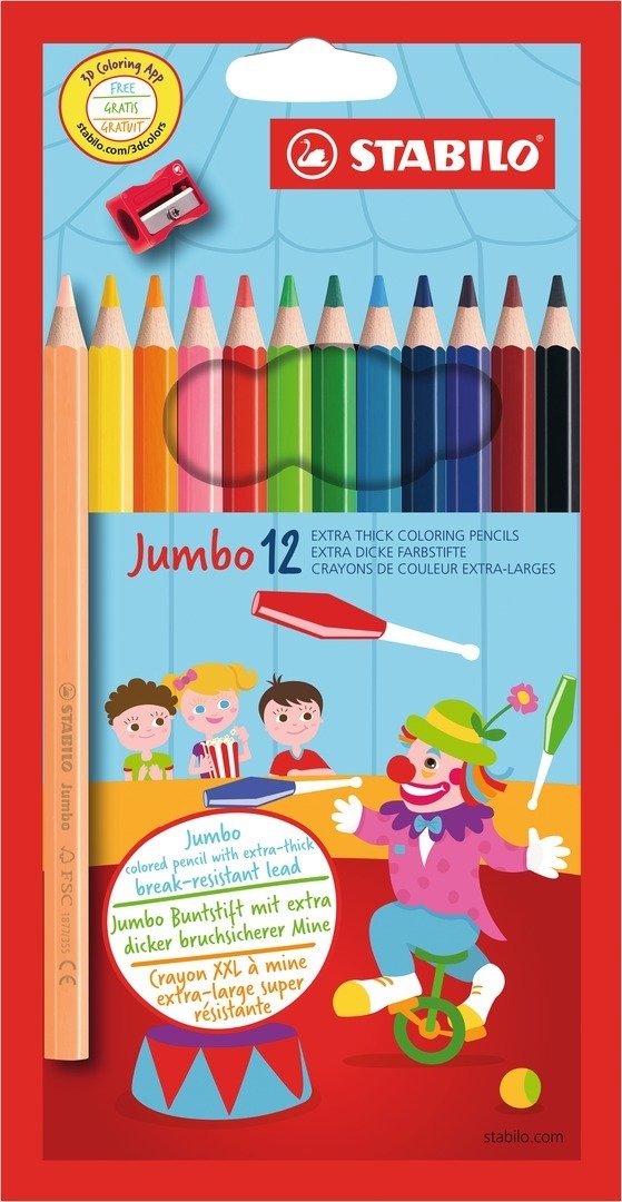 STABILO Swans Jumbo 12 ks Pouzdro s Ořezávátkem