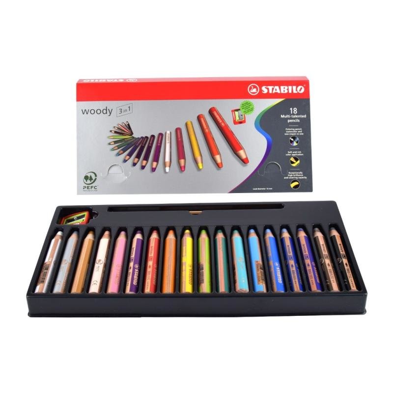 Multifunkčná pastelka, vodovka a voskovka v jednom Ideálna pre detské ruky vďaka svojej hrúbke Nelámavá tuha XXL s priemerom 10 mm Kreslí na rôzne povrchy: drevo, kartón, sklo, koža, plast, kov, čierny papier a ďalšie hladké povrchy 18 farebných odtieňov Možno ľahko zmyť vodou Vyrobená 100% z dreva certifikovaného PEFC™