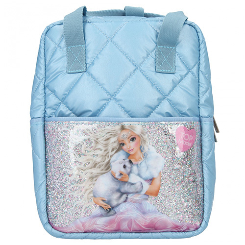 Prošívaný batůžek Top Model, Světle modrý, June s ledním medvědem a flitry
