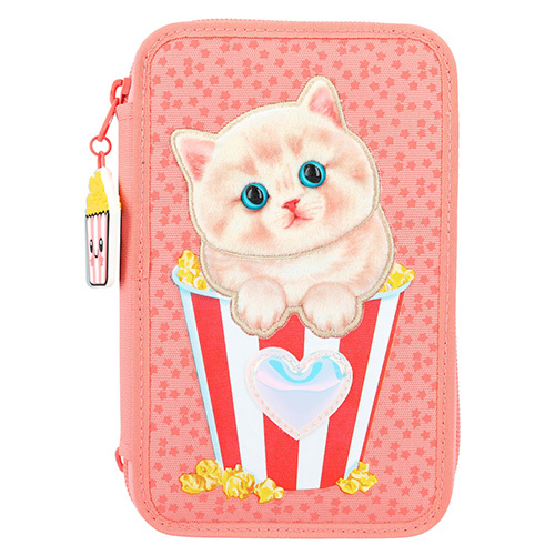 Penál 3 patra s výbavou Top Model, Kočka + Popcorn