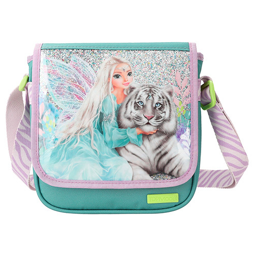 Taška přes rameno s flitry Top Model, Víla s bílým tygrem, zeleno-fialová