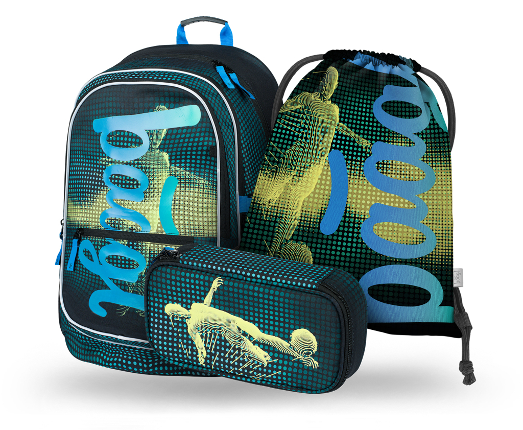 Set obsahuje ergonomický školský batoh, praktický peračník a pohodlný vak na obuv, ktoré sú navrhnuté tak, aby uľahčili školský deň a voľný čas. Batoh ponúka tri samostatne uzatvárateľné komory s vnútorným organizérom, vrátane vrecka na 15" notebook alebo tablet, čo zaručuje prehľadnosť a dokonalú organizáciu všetkých školských potrieb. Vďaka ergonomicky tvarovaným chrbtom a plne nastaviteľným popruhom je nosenie pohodlné aj pri dlhšom používaní. Batoh je vyrobený z pevného, vodeodolného materiálu, takže vaše veci budú vždy v bezpečí aj za nepriaznivého počasia. Navyše reflexné prvky zvyšujú bezpečnosť dieťaťa pri pohybe na ceste.