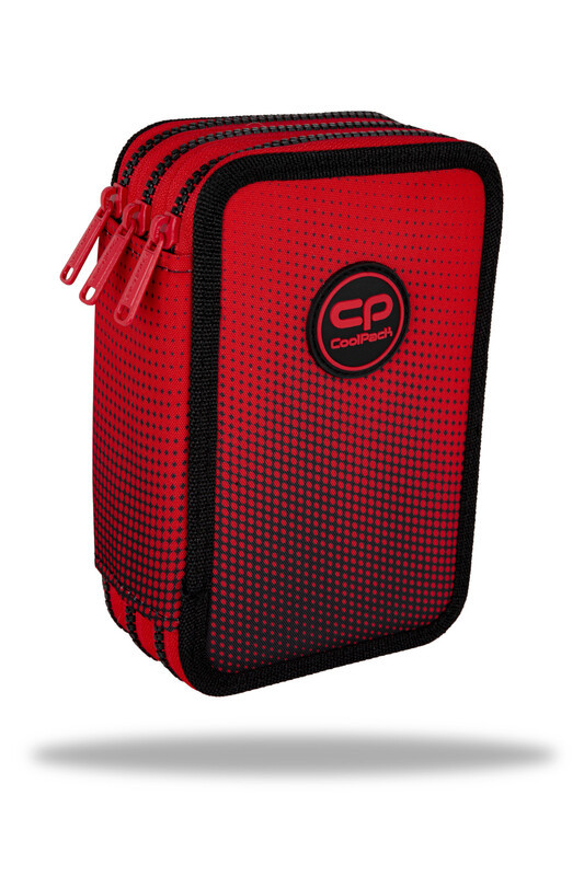 PATIO - Peračník 3 zipsy Jumper Gradient Cranberry - vybavenýVybavený 3 zips školský peračník CoolPack Jumper 3 Obsahuje: • trojhranné pastelky Colorino 18 ks • farebné fixy Colorino 18 ks • trojhranná ceruzka HB Colorino 1 ks • trojhranná ceruzka 2B Colorino 1 ks • trojhranné gélové pero Colorino 2 ks • pravítko 15 cm • trojuholník 10 cm • uhlomer 10 cm • nožnice 11 cm • guma Colorino • strúhadlo