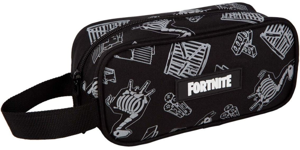 Penál na tužky v černé barvě vyvedený s motivem hry Fortnite. Zapínání je na zip.
