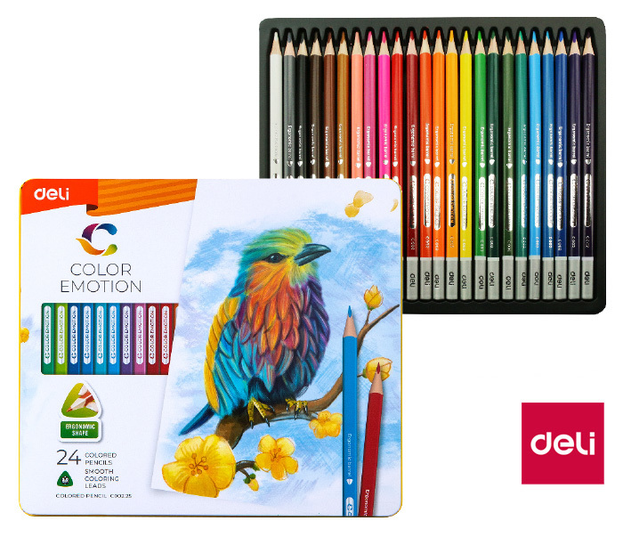 Pastelky DELI trojhranné 24 farieb Color Emotion kovové púzdro EC00225