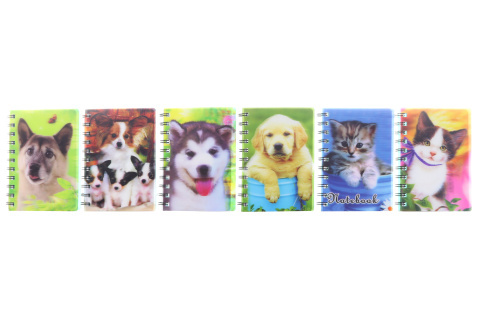Kroužkový blok s motivem pejsků a kočiček. Rozměry cca 10,5 x 14,5 cm. Uvnitř řádkované listy s bílým okrajem. Výrobek není hračka. prečítať celé