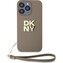 DKNY PU Leather Stack Logo Wrist Strap kryt iPhone 14 Pro Max béžový