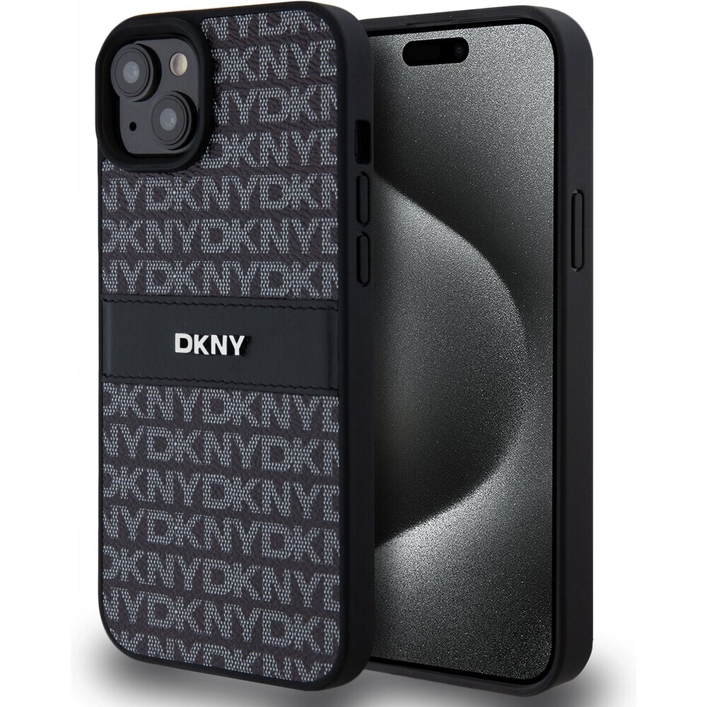 DKNY PU Leather Repeat Pattern Tonal Stripe kryt iPhone 15 Plus černý