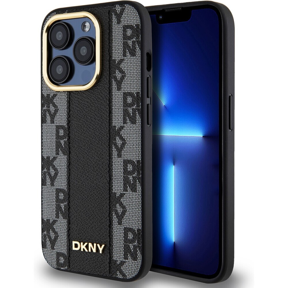 DKNY PU Leather Checkered Pattern Magsafe kryt iPhone 15 Pro Max černý