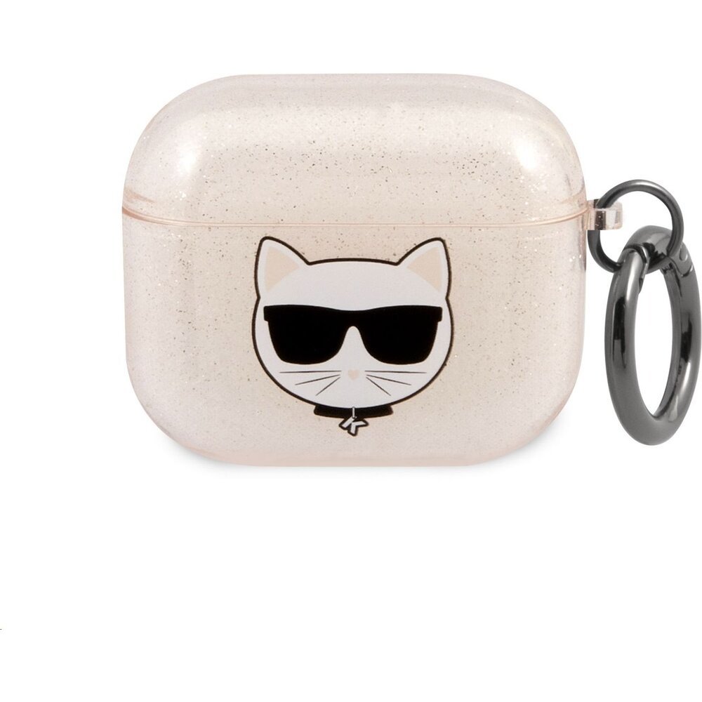 Karl Lagerfeld TPU Glitter Choupette Head pouzdro pro Airpods 3 zlaté