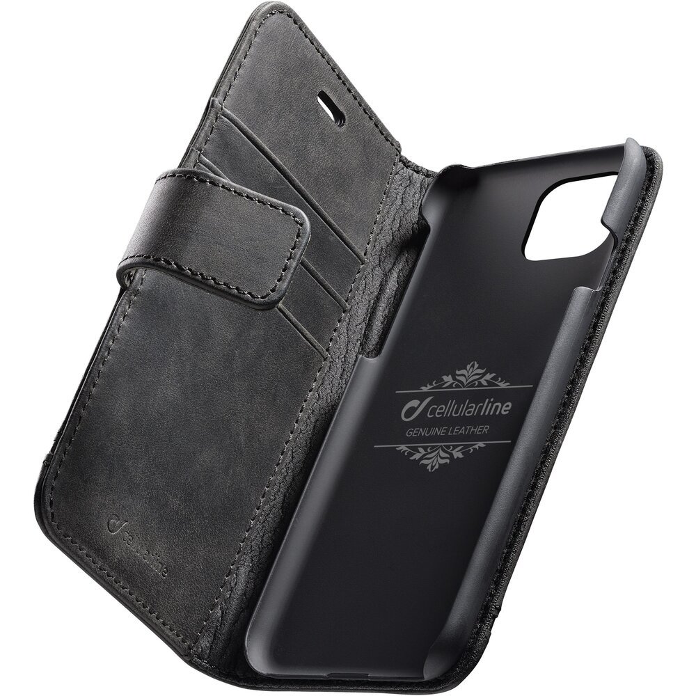 Cellularline Supreme kožené flipové pouzdro Apple iPhone 11 černé
