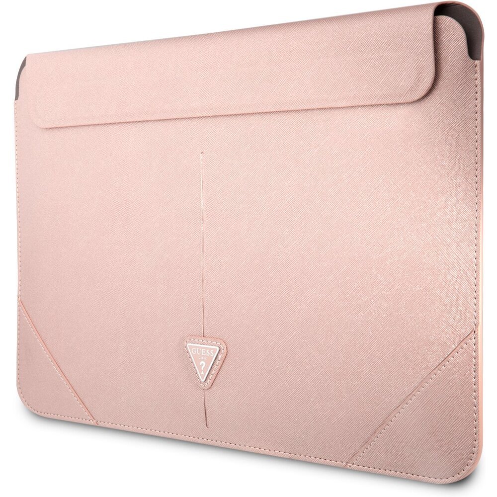 Guess Saffiano Triangle Metal Logo Computer Sleeve 16" růžový