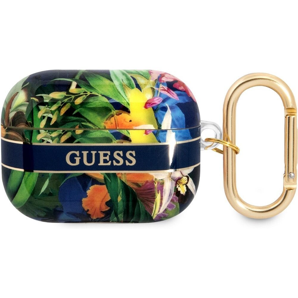 Guess TPU Flower Print pouzdro Airpods Pro modré