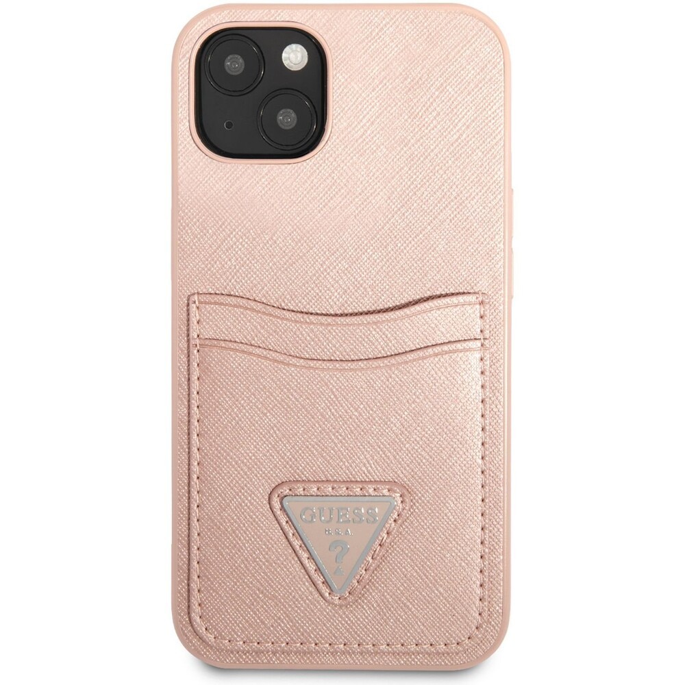 Guess Saffiano Double Card kryt iPhone 13 mini růžový