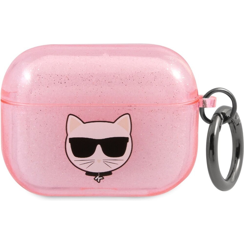 Karl Lagerfeld TPU Glitter Choupette Head pouzdro pro Airpods Pro růžové