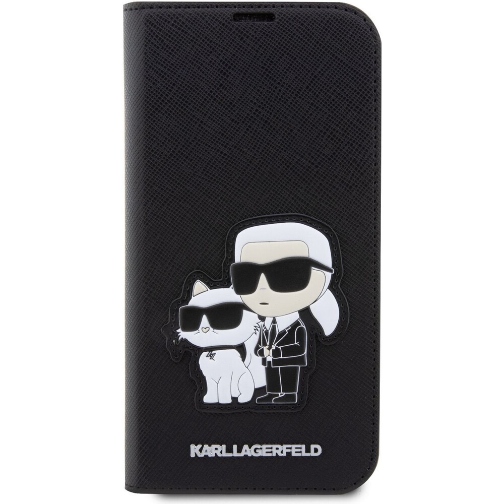 Karl Lagerfeld PU Saffiano Karl and Choupette NFT flipové pouzdro pro iPhone 14 Pro černé