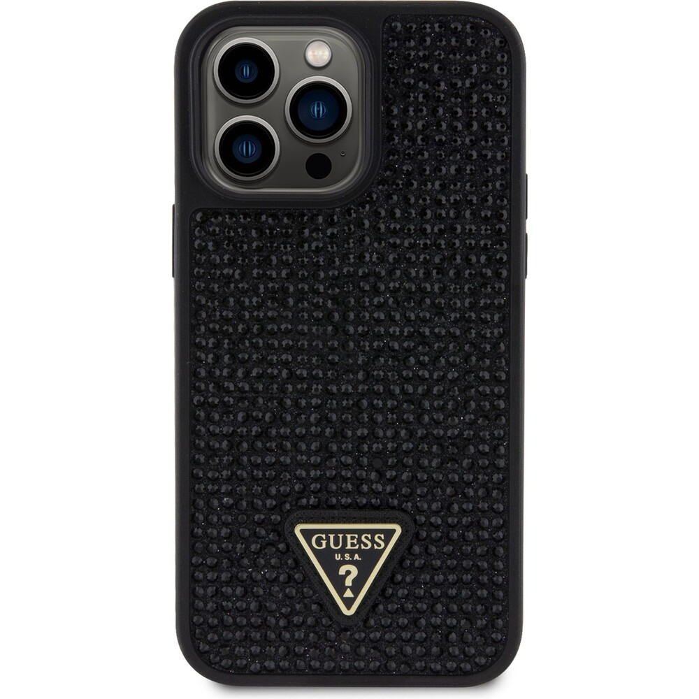 Guess Rhinestones Triangle Metal Logo kryt pro iPhone 14 Pro Max černý