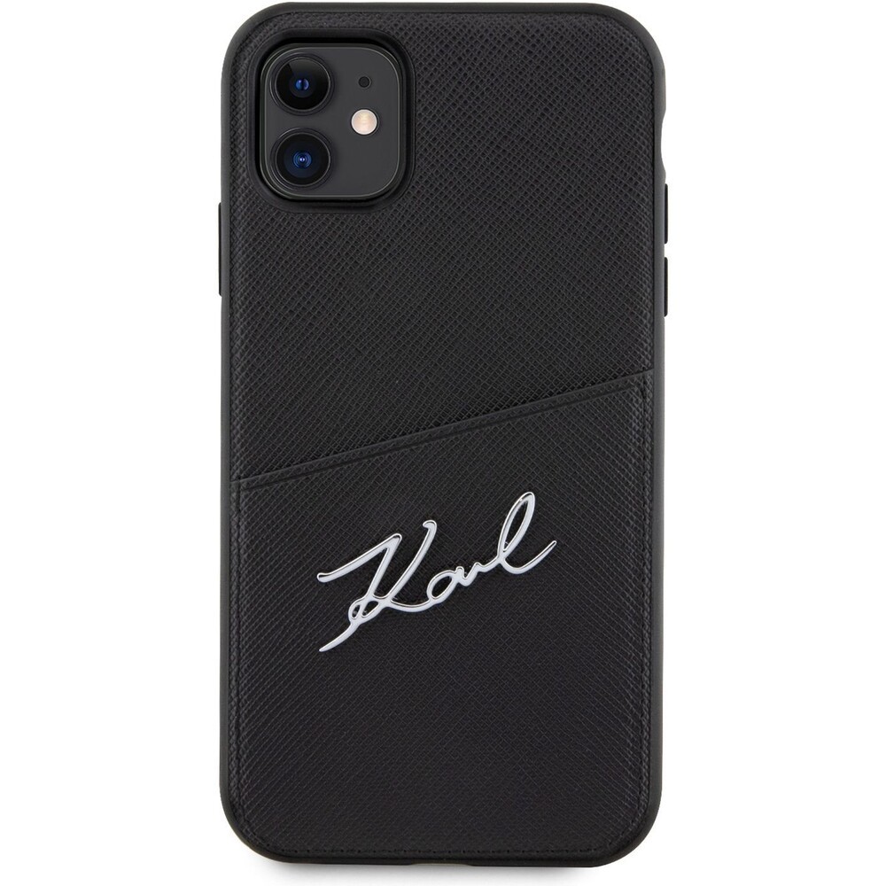 Karl Lagerfeld Saffiano Card Slot Metal Signature kryt pro iPhone 11 černý