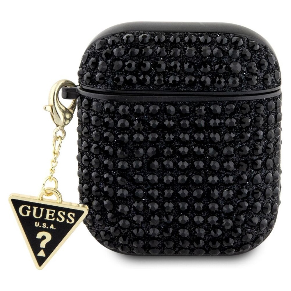 Guess Rhinestones Triangle Metal Logo pouzdro AirPods 1/2 černé