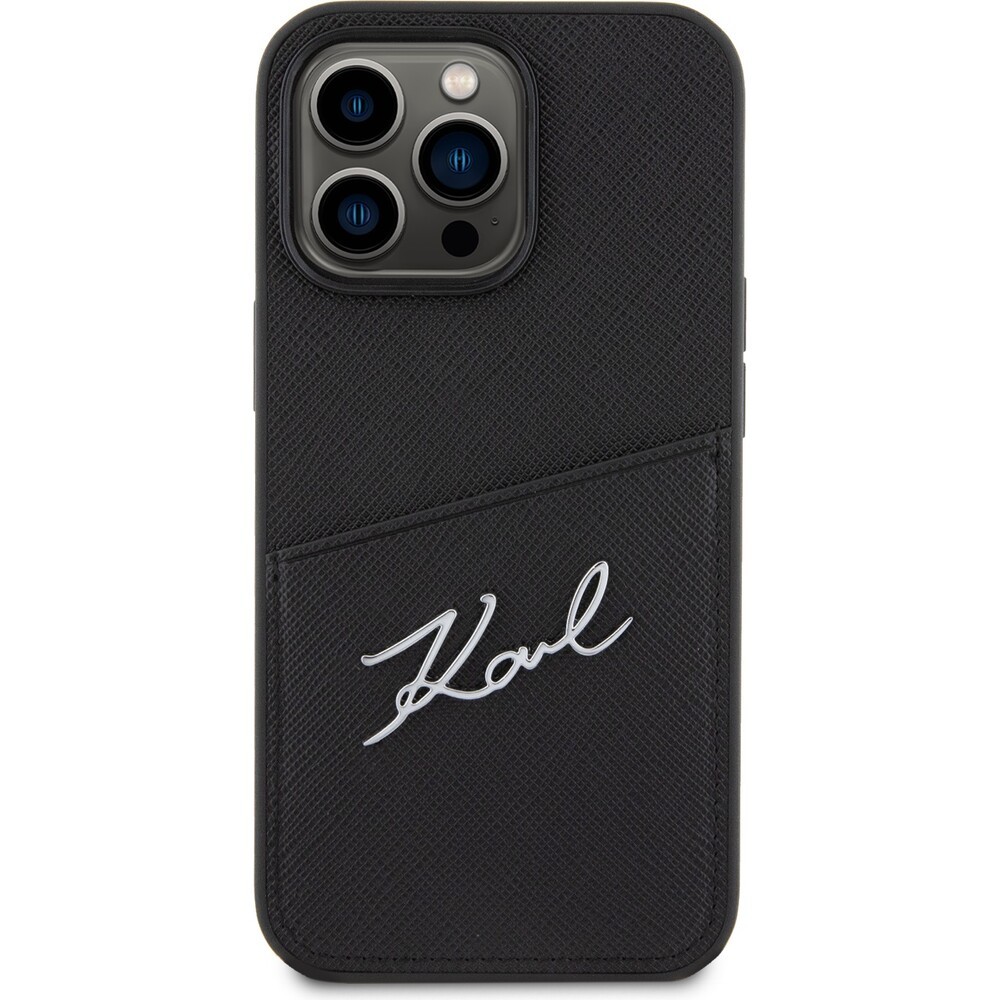 Karl Lagerfeld Saffiano Card Slot Metal Signature kryt iPhone 13 Pro černý