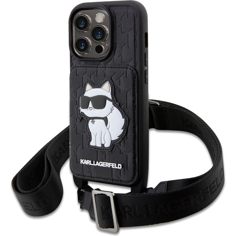Karl Lagerfeld Saffiano Monogram Crossbody Choupette NFT Kryt pro iPhone 14 Pro černý