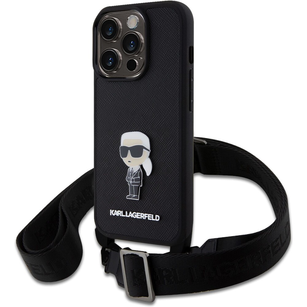 Karl Lagerfeld Saffiano Crossbody Metal Ikonik kryt iPhone 15 Pro černý