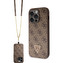 Guess PU 4G Strass Triangle Metal Logo Kryt + Crossbody Popruh iPhone 15 Pro hnědý