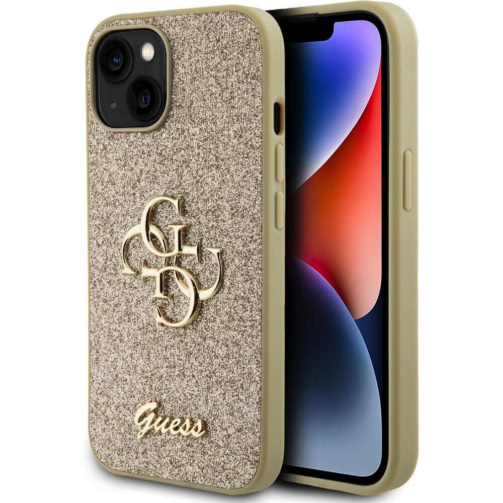 Guess PU Fixed Glitter 4G Metal Logo kryt iPhone 15 zlatý