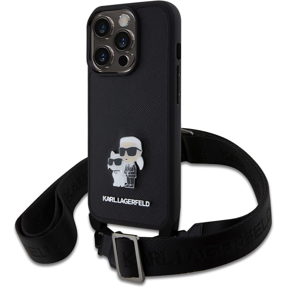 Karl Lagerfeld Saffiano Crossbody Metal Karl and Choupette kryt iPhone 15 Pro černý