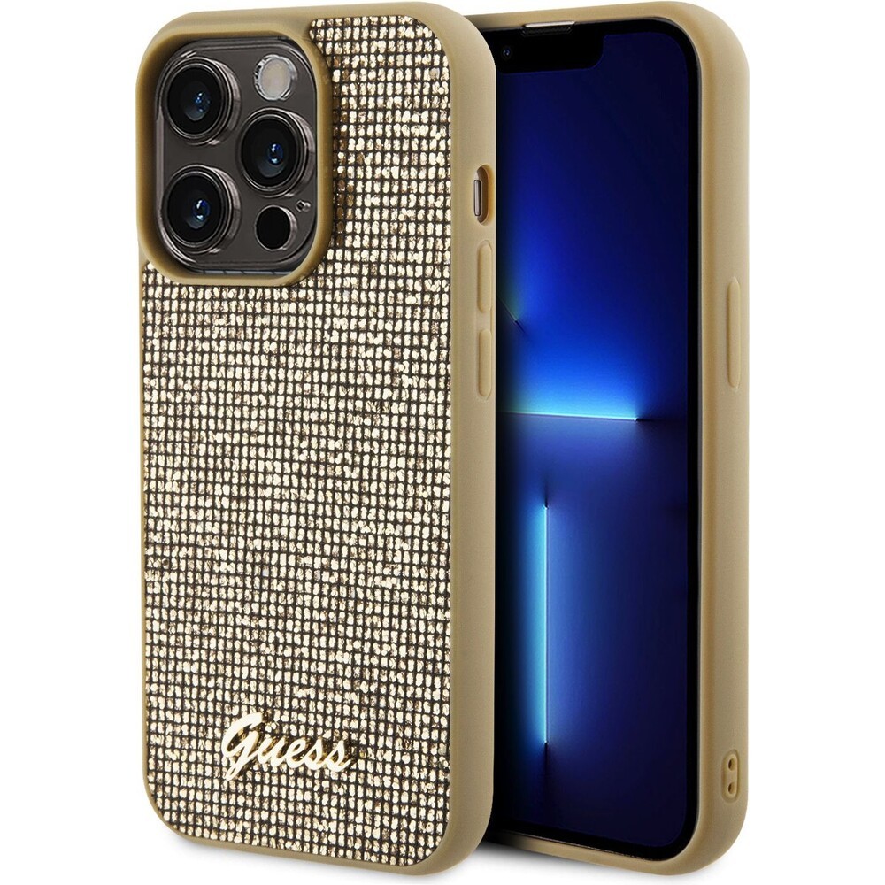 Guess PU Square Mirror Script Logo kryt iPhone 15 Pro zlatý
