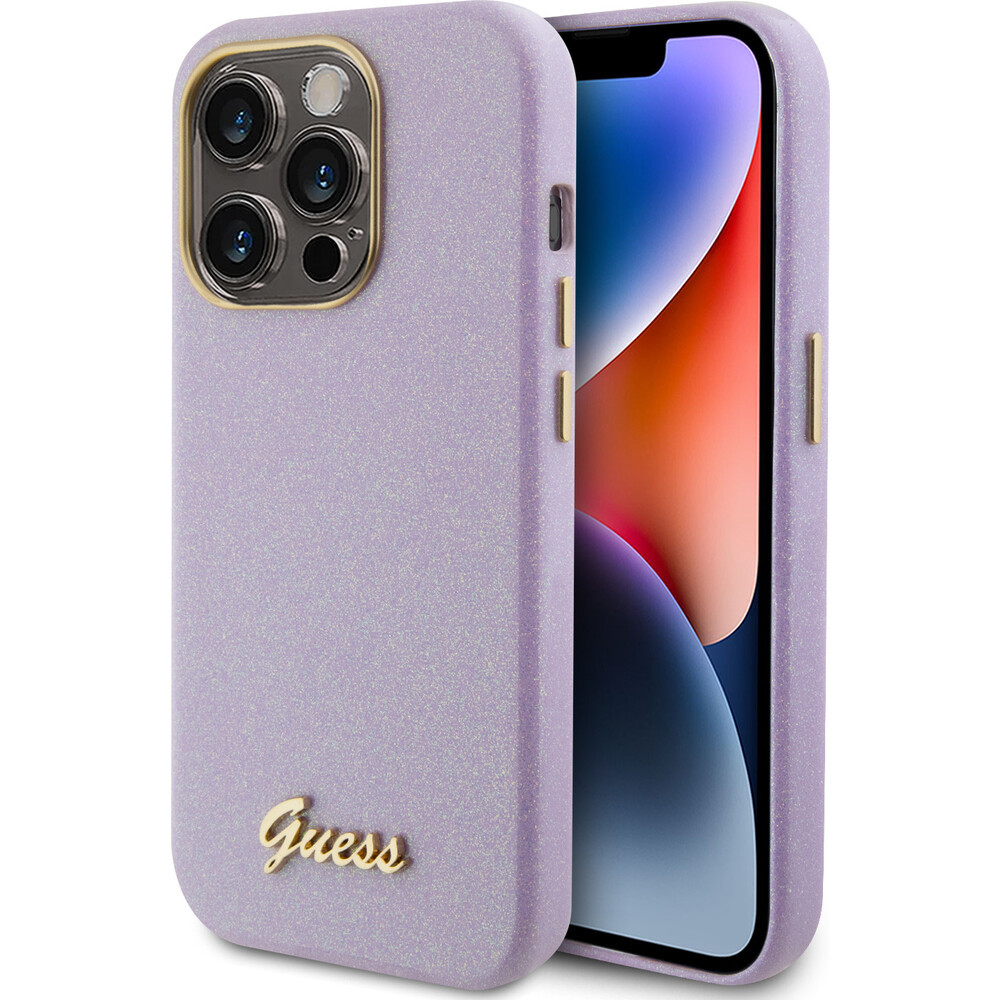 Guess PU Glitter Full Wrapped kryt iPhone 15 Pro fialový