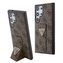 Guess PU Grip Stand 4G Strass Triangle Metal Logo Zadní Kryt pro Samsung Galaxy S24 Ultra Brown