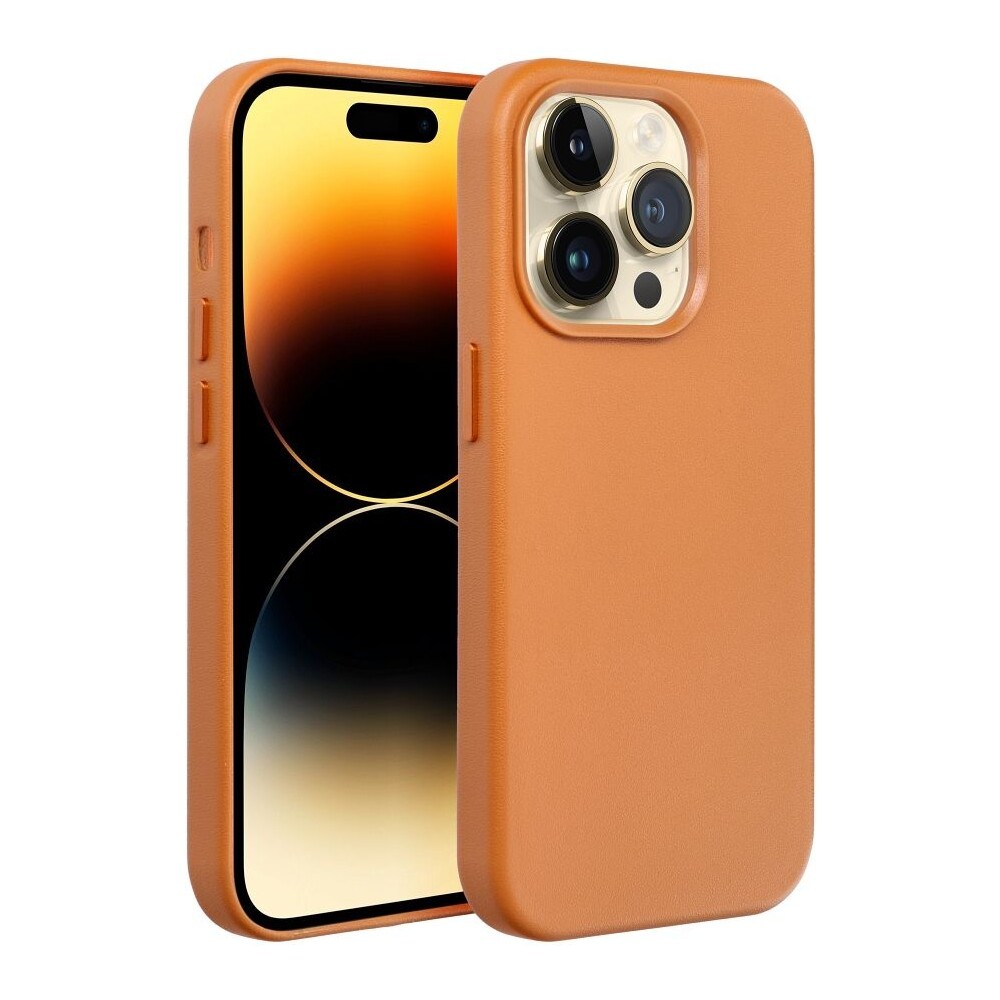 Smarty Leather Mag kryt s MagSafe iPhone 15 Pro oranžový