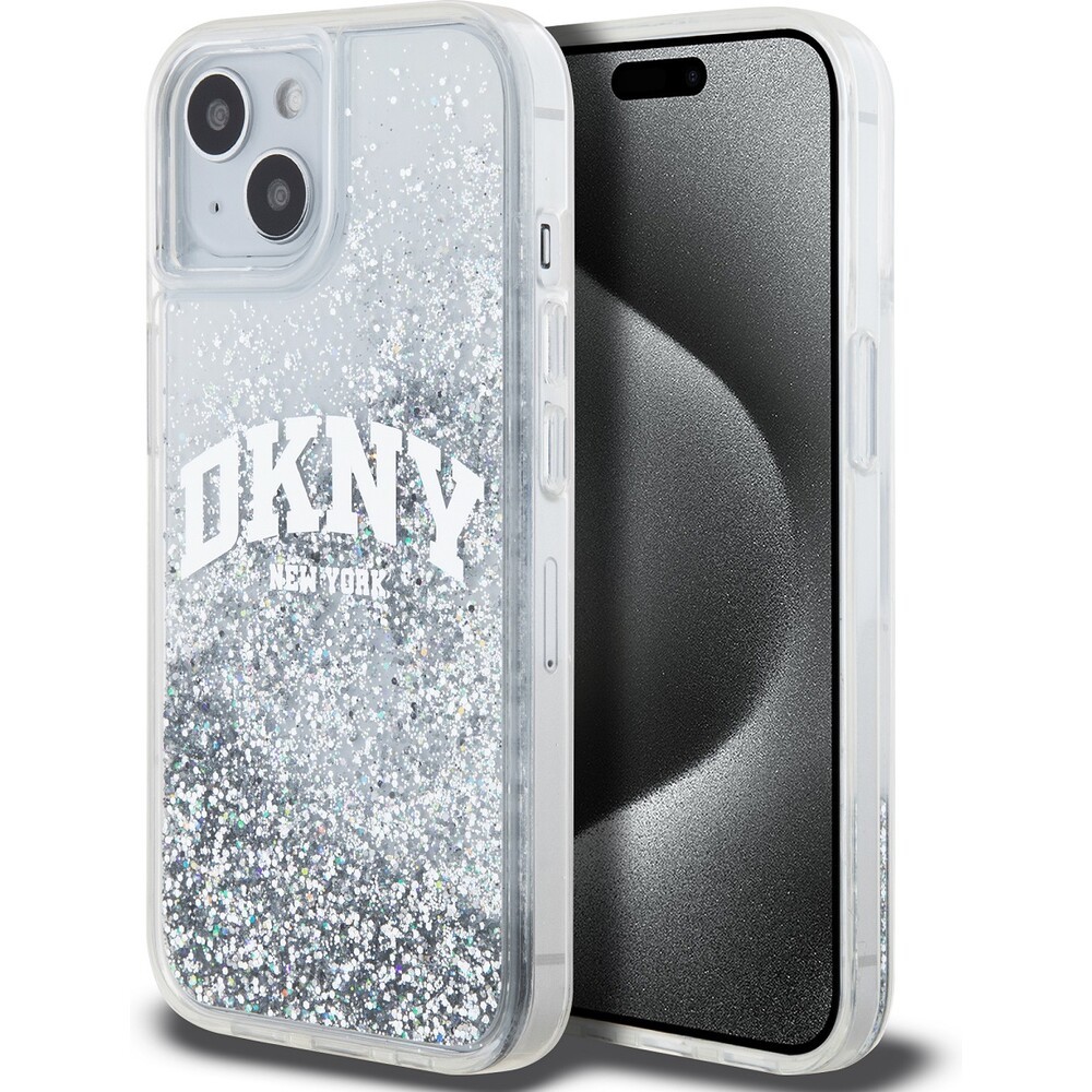 DKNY Liquid Glitter Arch Logo kryt iPhone 15 čirý