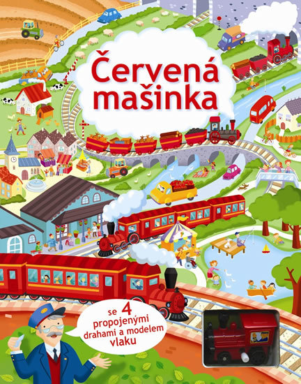 Červená mašinka se 4 propojenými drahami a modelem vlaku (česky)