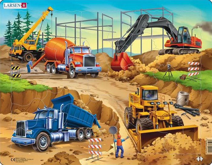 Čilý ruch na stavbě.Některé dílky mají tvar motorky,ptáčka,traktoru a ryby. prečítať celé