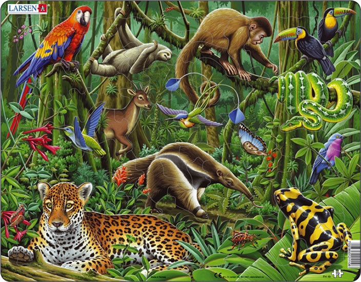 V deštném pralese Jižní Ameriky můžeme potkat spoustu zvířat. Některá jsou na tomto puzzle. Poznáš je ? prečítať celé
